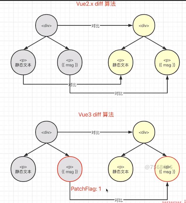patchFlag和dynamicChildren,实现 靶向更新。 - 对比时跳过静态根节点,减少 90% 的无效比对。