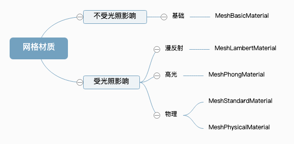 MeshPhysicalMaterial是MeshStandardMaterial扩展的子类,提供了更多功能属性。